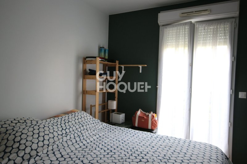 Dans une résidence récente, un appartement de trois pièces comprenant une entrée, un séjour donnant sur balcon (exposition Sud Ouest), une cuisine aménagée/équipée, deux chambres avec placards, une salle de bains, une cave et une place de parking en sous-sol complètent ce bien. Disponible à partir du 15/9