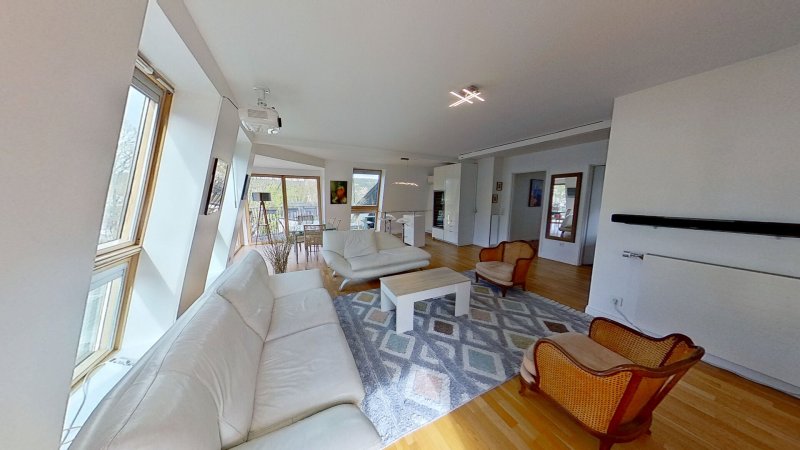L'intérieur dévoile quatre pièces aux volumes parfaitement maîtrisés, incluant une cuisine équipée et aménagée au design raffiné, tandis que le confort thermique est assuré par un système de chauffage et d'eau chaude collectif d'une efficacité exemplaire. La sécurité et la fluidité de votre quotidien sont ici érigées en priorité, garanties par un ascenseur desservant ce nid d'aigle, un interphone et une porte à code, le tout complété par l'exclusivité d'un emplacement de parking privé (N°57). Proposé à un loyer mensuel de 2 660 Euro, ce refuge de haut vol incarne l'alliance rare entre sérénité forestière et excellence résidentielle, une opportunité prestigieuse pour une clientèle en quête d'un art de vivre sans compromis.