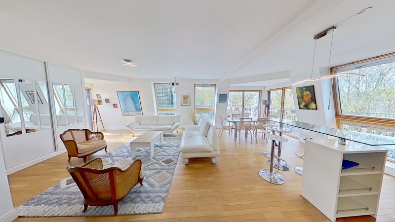 2Y Foncier Conseil vous propose, au sein de l'écrin confidentiel Allée de la Forêt à Chaville, un penthouse d'exception qui redéfinit les codes de l'élégance contemporaine. Niché au cinquième et dernier étage d'une résidence de standing érigée en 2017, ce somptueux appartement traversant de 109 m² s'impose comme un véritable belvédère urbain où la lumière règne en maître absolue.
