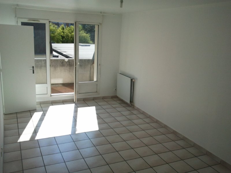Proches commerces et bus, dans résidence agréable, grand studio avec terrasse de 12.35 m2 comprenant : une entrée, une salle d'eau avec WC, un séjour avec terrasse et une cuisine avec placard. garage en sous sol - chauffage individuel gaz - eau froide collective