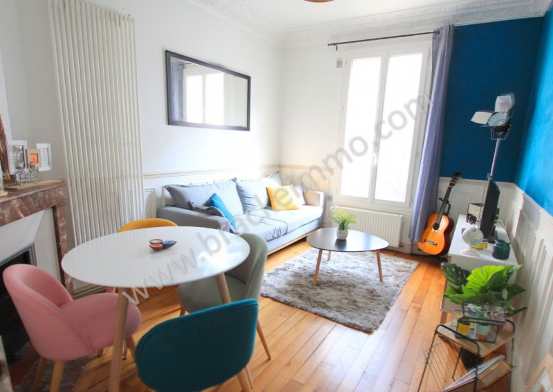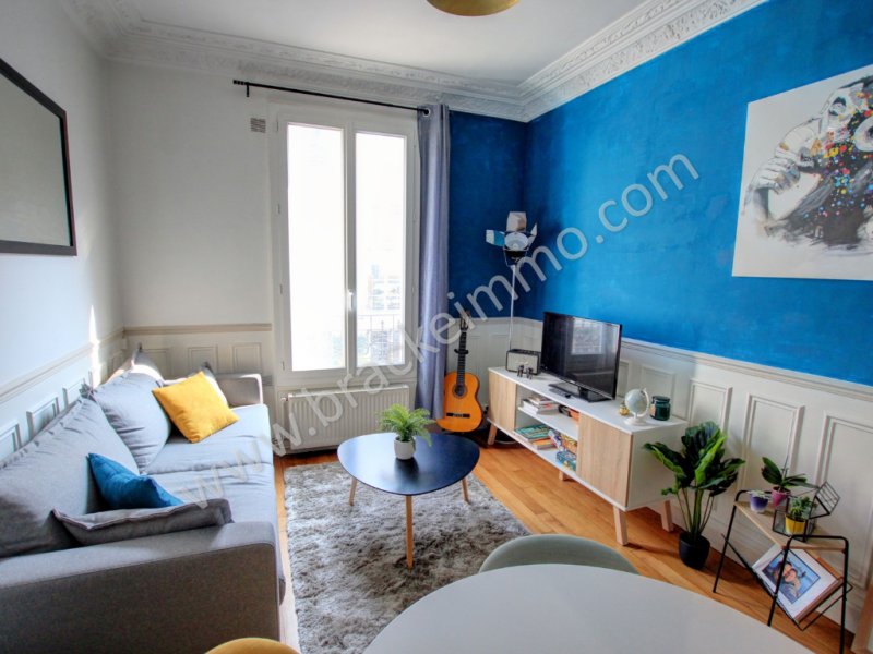 DANS UNE COPROPRIÉTÈ 1930, UN APPARTEMENT 2 PIECES DE 34M² LOUÉ MEUBLÉ en bon état comprenant: Entrée, séjour, cuisine aménagée, chambre avec salle d'eau attenante, WC séparé, rangements. Charme de l'ancien : parquet, moulures, cheminées. Une Cave en sous-sol.