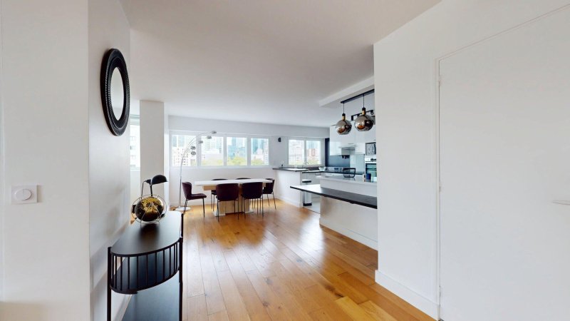 Il se situe au pied des commerces et à moins de 10 minutes de la Défense.