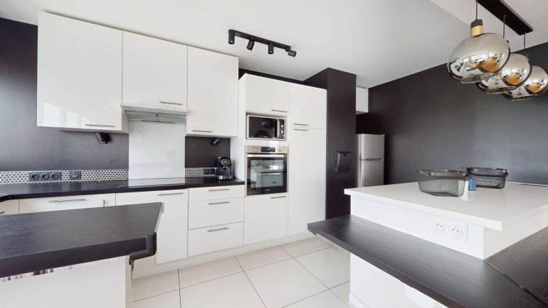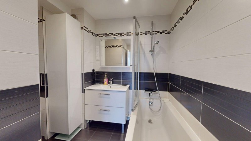 Cet appartement spacieux se compose d'une entrée avec rangements, d'une grande cuisine aménagée et équipée ouverte sur un vaste double séjour parqueté, de deux chambres, d'une salle de douche avec toilettes, d'une salle de bains avec toilettes et de nombreux rangements.