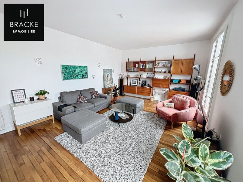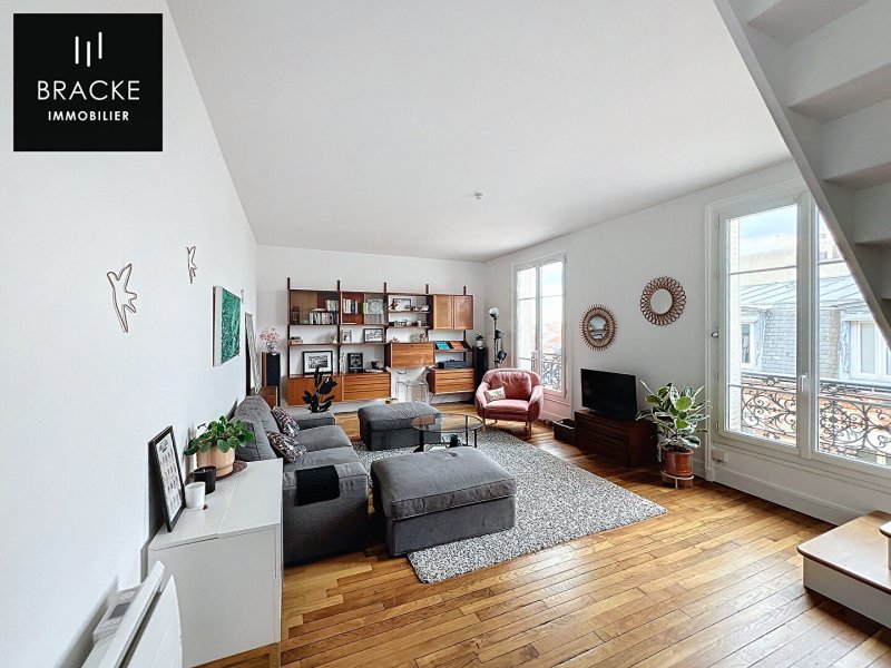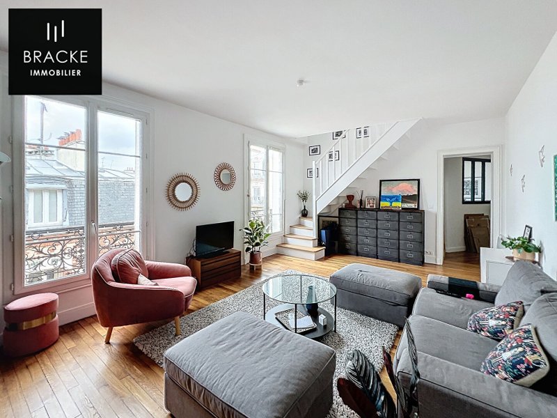 DUPLEX dans immeuble 1930 en dernier étage avec ascenseur. Etat impeccable. 1er niveau : grande cuisine aménagée- salle à manger, buanderie/office, séjour, wc. 2ème niveau : 3 chambres dont une avec sa salle d'eau, salle de bains, wc. Surface au sol 106m² - Surface carrez 92.88m2. CLAIR, LUMINEUX, SANS VIS A VIS.