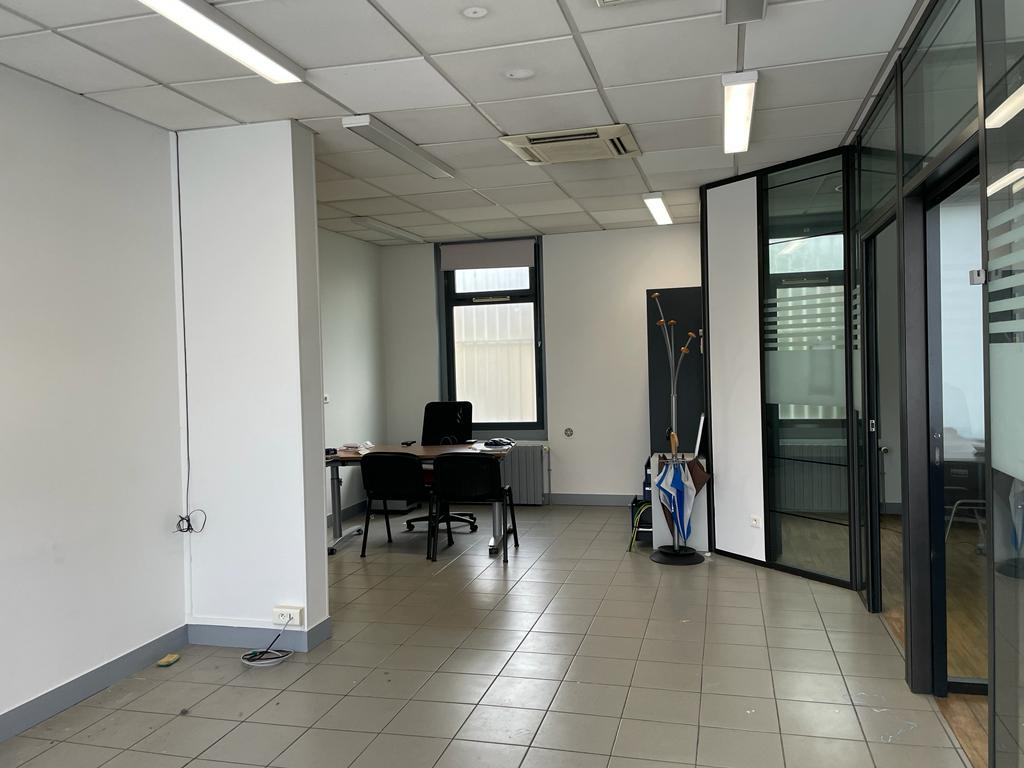 Aménagements : accueil, open-space, bureaux cloisonnés, salle de réunion, sanitaires, local technique.