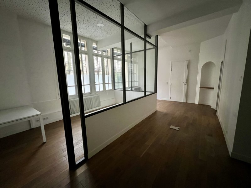 Avenue RENE COTY 75014, Local Professionnel 99 m2 rénové en RDC dans hôtel particulier, idéal activité tertiaire ou libérale, comprenant actuellement open-space 50m2, 3 bureaux 20-12-9 m2, cabinet de toilette, cuisine, calme et claire, 3,50 m sous-plafond, local sécurisé, accès direct PMR sur rue possible, 1 parking 2 roues sur place + 1 PRK voiture à 100m, proche RER B Denfert Rochereau à 5 minutes, métro 04 Mouton Duvernet ou 06 Saint jacques à 5 minutes, Bus 88-38-68-216.