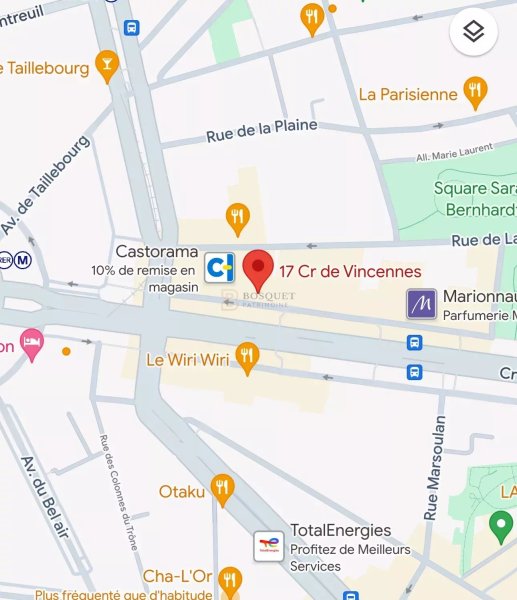 Situé sur le Cours de Vincennes, ce local se trouve à proximité de la Place de la Nation, une zone dynamique et bien desservie par les transports en commun. Le quartier est connu pour ses nombreux commerces, restaurants et services, attirant une clientèle diverse et régulière.