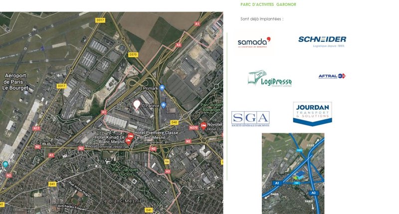A104 et N2 (1 km). Le Bâtiment 1 s'inscrit en partie Sud de Garonor.