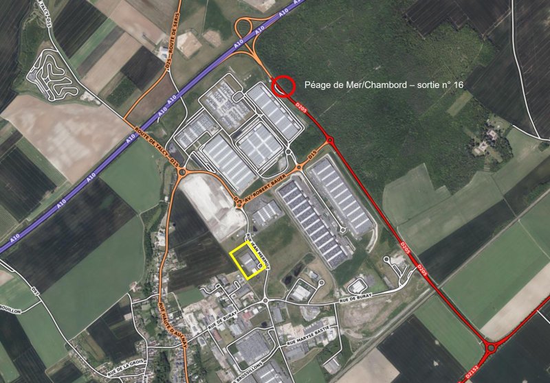 Situé en zone logistique de Mer dans le Loir-et-Cher, accès autoroute A10 à moins de 2km, sur un foncier de 3,7 ha, le site accueille à la location un ensemble de deux bâtiments, composé de :