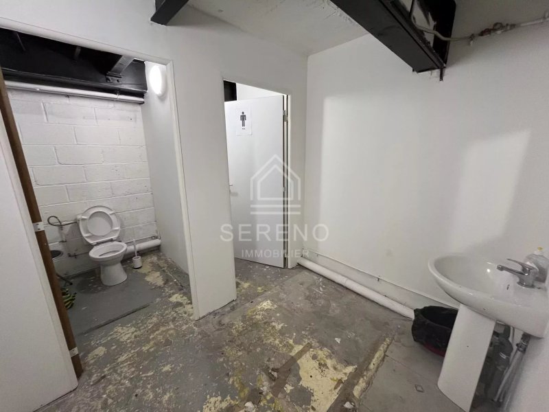 Un entrepôt avec entrée camion très grande hauteur sous plafond (jusqu'à 8m au faitage) avec bureau, atelier, cuisine et sanitaires.
