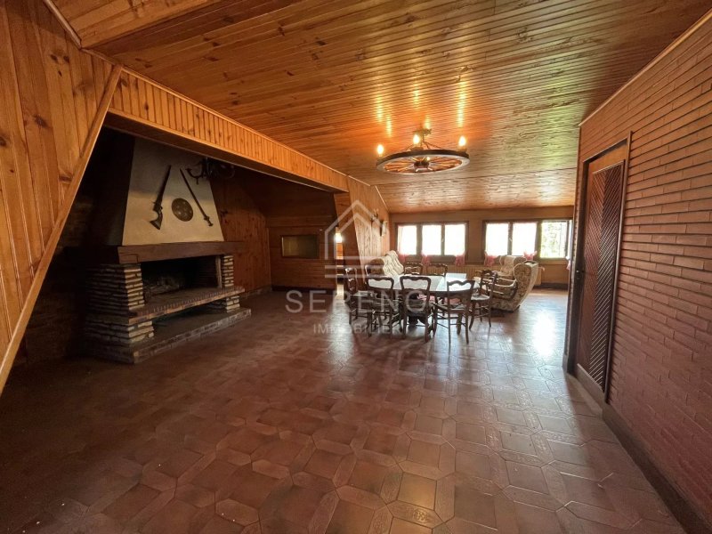 A l'étage : une grande pièce de vie avec cheminée, une chambre mansardée, une salle de bain, une cuisine et un wc.