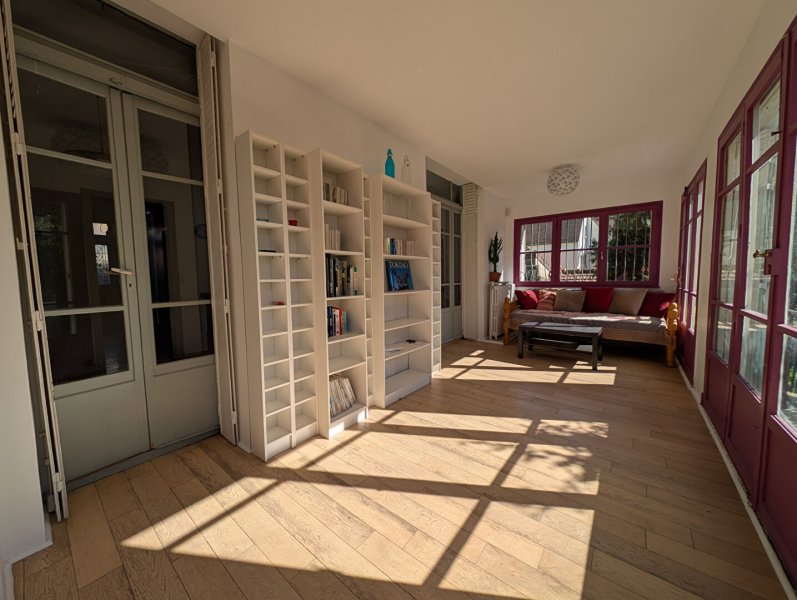 Entrée, vestiaire avec wc, double séjour, cuisine, véranda., accès terrasse et jardin.