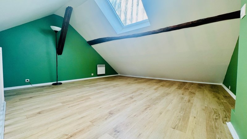 AU COEUR DU BOURG, dans une cour commune, belle meulière SANS EXTERIEUR, charme de l'ancien et des poutres, comprenant : au rdc : entrée, séjour avec cheminée, cuisine à l'amérticaine neuve, couloir avec placard, WC. A l'étage 2 chambres dont une avec mezzanine de 20 m2 au sol, salle de bains avec baignoire et douche En annexe cellier:cave extérieur de 6m2 Chauffage et eau chaude individuel électrique - ISOLATION INTERIEURE NEUVE LIBRE de suite