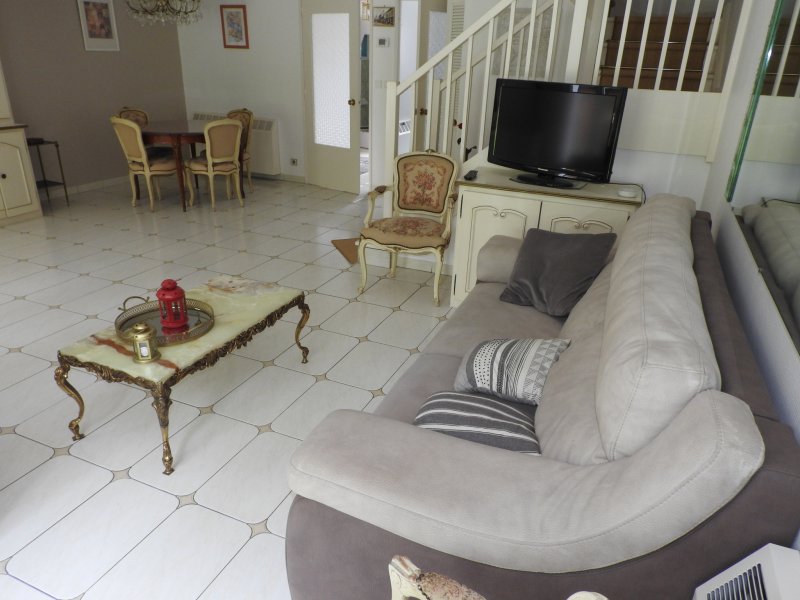 Résidence de l'Orée, pavillon mitoyen de plus de 100 m2 habitables, loué meublé. Entrée, cuisine aménagée et équipée, Double séjour, wc indépendant. A l'étage : 3 chambres, 1 salle de bains avec baignoire, douche et wc.Garage.Terrain de plus de 400m2. Résidence très prisée avec sa base de loisirs, piscine, tennis, snack. Disponible fin Novembre. Honoraires Agence : 1391 EUR