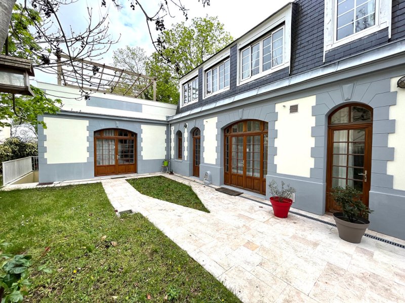 MAISONS-LAFFITTE - 7 min RER - Ravissante maison de caractère composée d'une entrée, un séjour avec cheminée, une salle à manger, une cuisine équipée et aménagée, 3 chambres, une SBD et une SDE, terrasses, jardin et 3 parkings. En sous-sol, un vaste bureau et rangements. Accès au tennis et piscine de la résidence. Clarté et beaux volumes sont au rdv ! Disponible immédiatement !