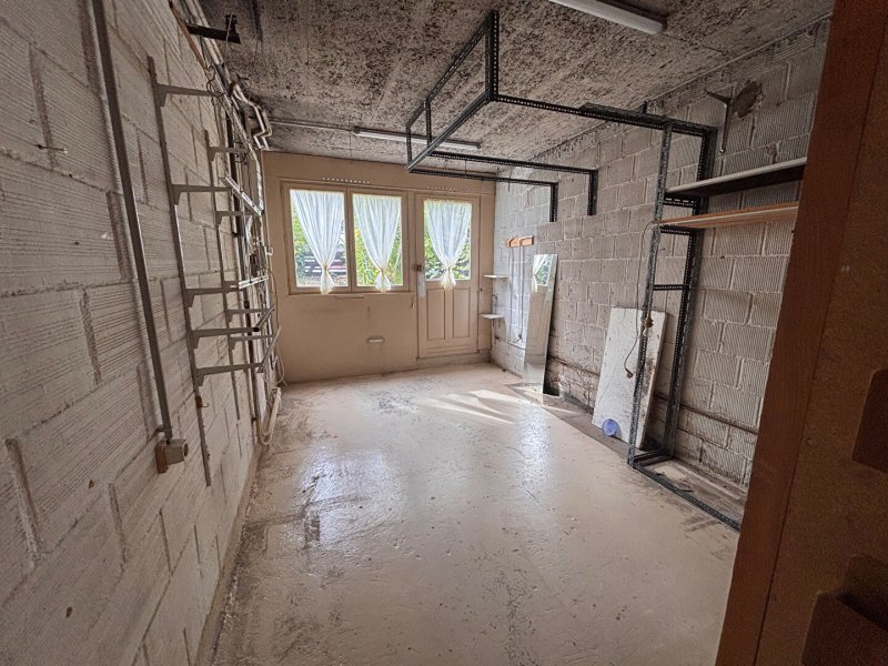 Cette maison sur un étage vous offrira au rez-de-chaussée : une entrée, un grand séjour lumineux, une cuisine aménagée, une buanderie, un WC ainsi qu'un garage avec des rangements déjà présents.
