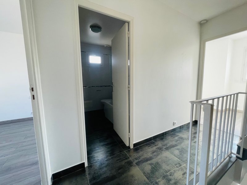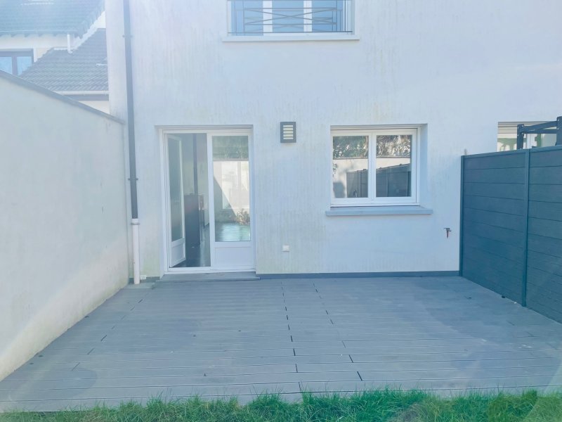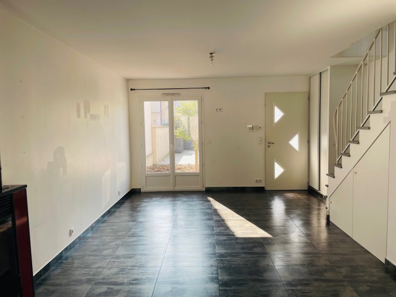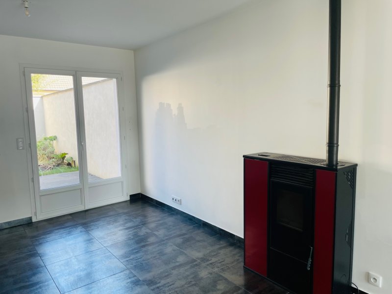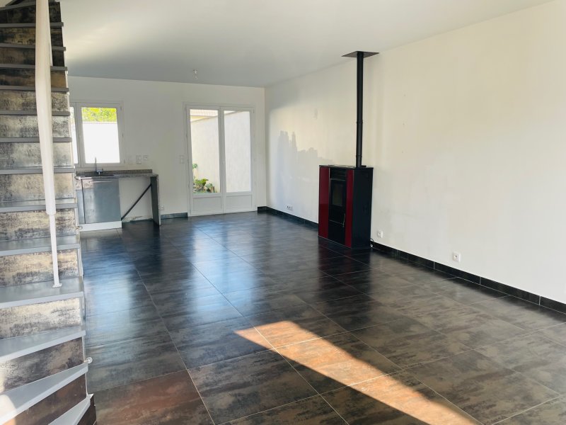 Dans un pavillon jumelé, une maison 3 pièces sur 3 niveaux avec cuisine semi équipée, poil d'appoint de chauffage à granulé et un WC, deux chambres au 1er étage et une salle d'eau avec WC, au second étage comble aménagé avec placard. Chauffage et eau chaude individuel électrique par ballon électrique