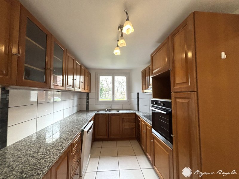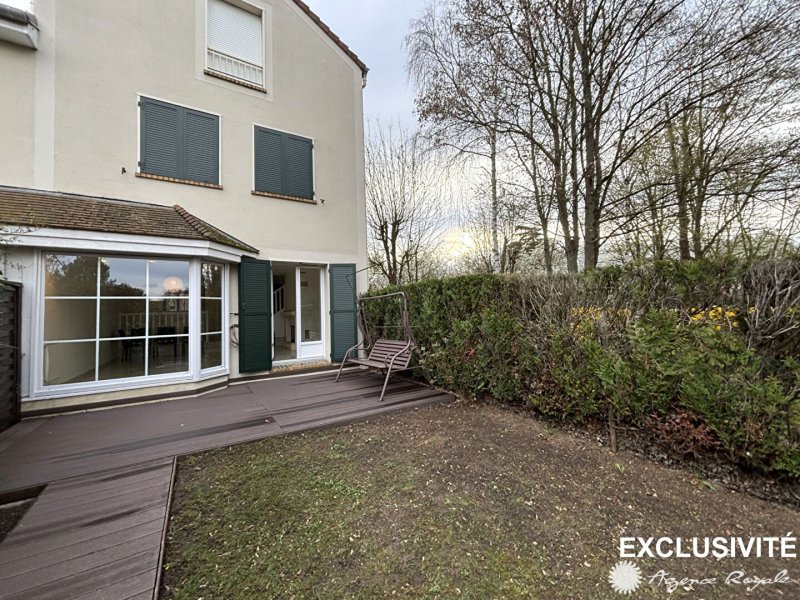 Maison de 135,69 m² en bon état avec JARDIN : Entrée avec placards, Séjour 40m² avec insert donnant sur TERRASSE et JARDIN, Cuisine équipée, 4 Chambres dont une suite parentale, Placards, 2 Salles de Bains, Salle de Douche, Dressing, Garage. Parc privatif et clos derrière la maison. Proche école Jean-Moulin, Collège des Hauts Grillets, Collège/Lycée Notre Dame et du Lycée International. Bus pour le centre ville et RER A.
