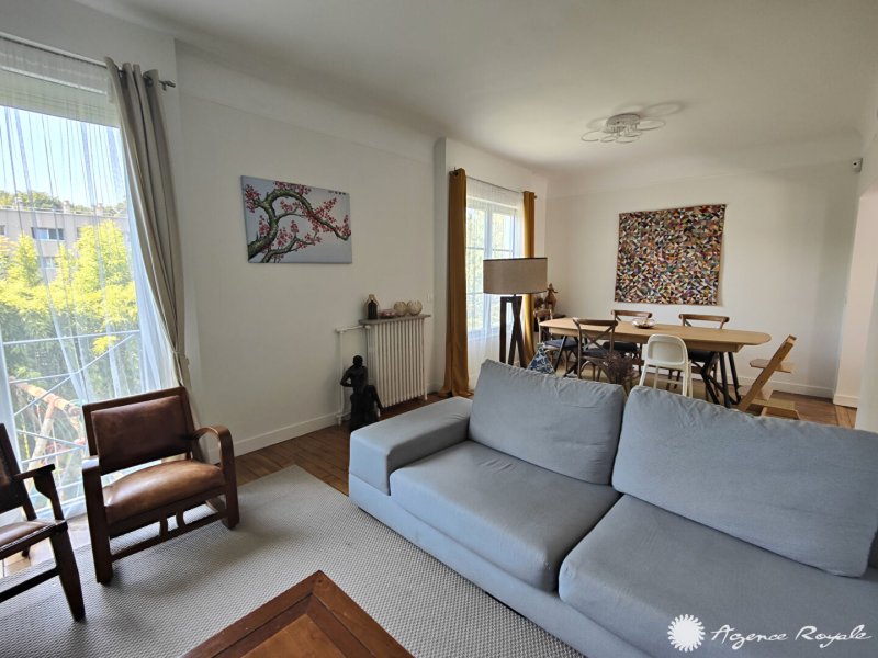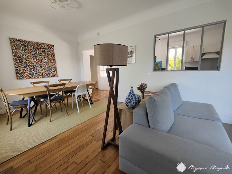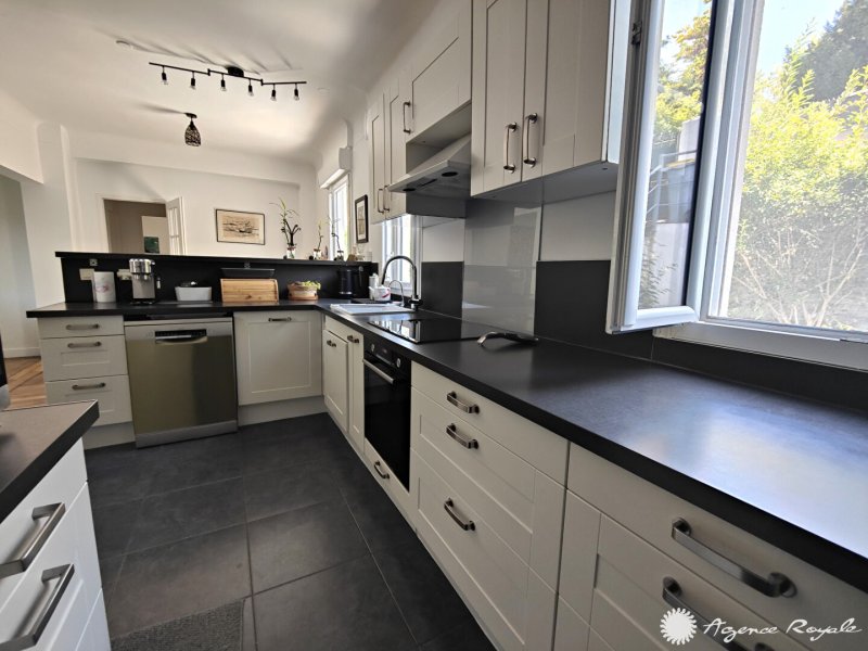Belle maison familiale de 152m² en bon état sur 380m² de terrain louée EN MEUBLÉE : Séjour parqueté exposé Sud donnant sur une Terrasse de 70m² avec Grande Cuisine équipée et espace repas le tout de 50m², 5 Belles Chambres, 2 Salles de Bains, 2 Salles de Douches, 4 WC, Buanderie, Chaufferie gaz. Sous-sol avec nombreux rangements. Pas de vis à vis. Calme et traversant. Quartier résidentiel, commerces et bus à proximité. Proche Section US et Espagnole.