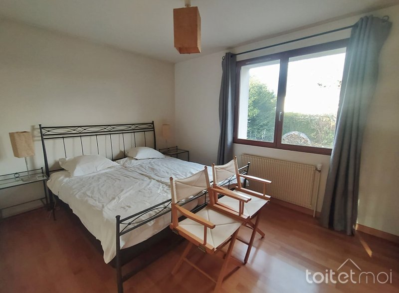 A l'étage, elle offre un très bel espace de vie (salon télé, télétravail, salle de jeux), deux chambres, et une salle d'eau avec wc.