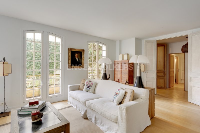 Entre la Tour Eiffel et les Invalides, en plein coeur du quartier Gros Caillou, Engel & Völkers vous propose en location une maison dans un oasis avec toit terrasse et jacuzzi en exclusivité.