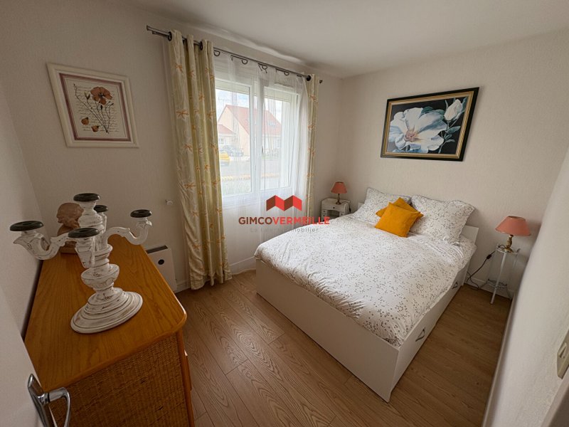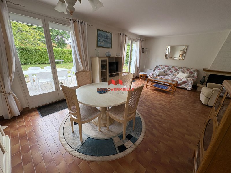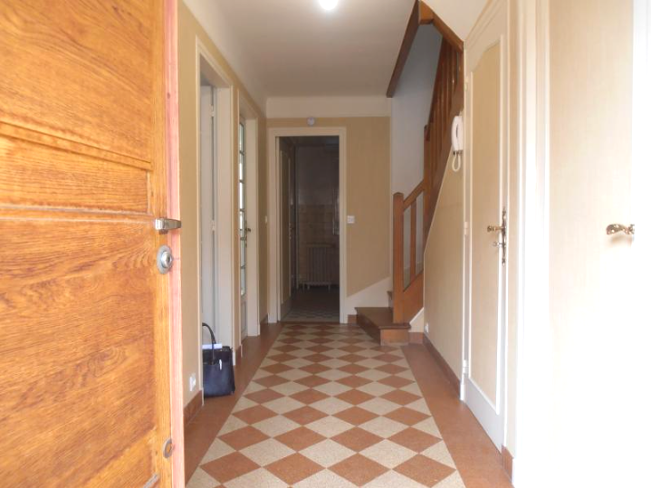 Ce bien loué entièrement meublé vous offre une entrée avec placard, un agréable séjour - salle à manger de 28m² doté d'une cheminée à foyer ouvert, une cuisine indépendante aménagée et équipée, un dégagement desservant trois chambres dont deux avec placard, une salle de douches et un wc séparé avec lave-mains.