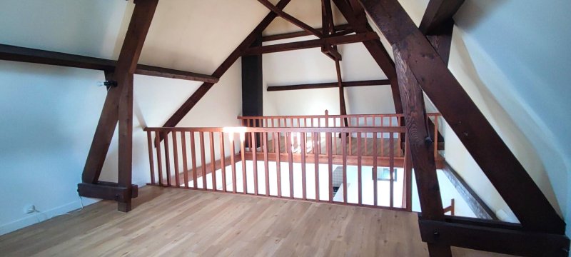 Elle se compose d'une grande entrée avec placard, un séjour double avec cheminée fonctionnelle ouvrant sur le jardin et la terrasse, deux mezzanines donnant sur le séjour dont une accessible directement et pouvant faire office de grand bureau, une cuisine ouverte meublée (équipement électroménager à disposition : plaques gaz, four, réfrigérateur intégré, emplacement lave-vaisselle 45 cms).