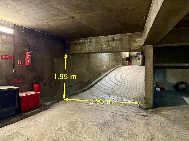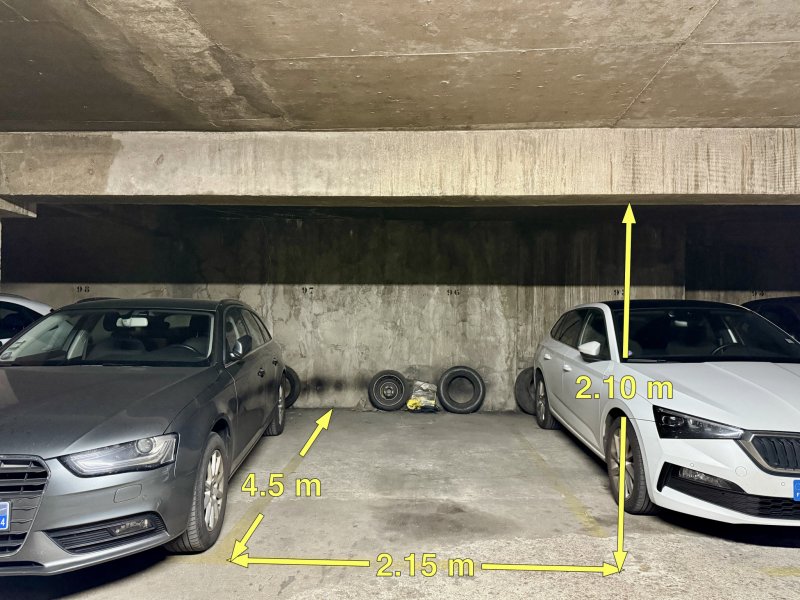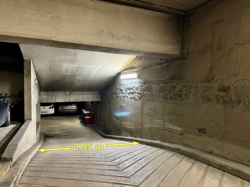 Rue de la Brèche aux Loups. Accès voiture par télécommande. Place de stationnement située au 2ème sous-sol. Accès piéton sécurisé. (Mesures sur les photos)