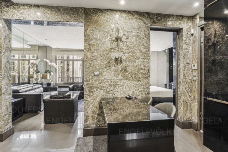 Engel & Völkers vous présente un appartement conçu comme des suites d'hôtel prêt à vivre, méticuleusement rénové avec des matériaux haut de gamme en marbre et granit, dans un immeuble pierre de taille.