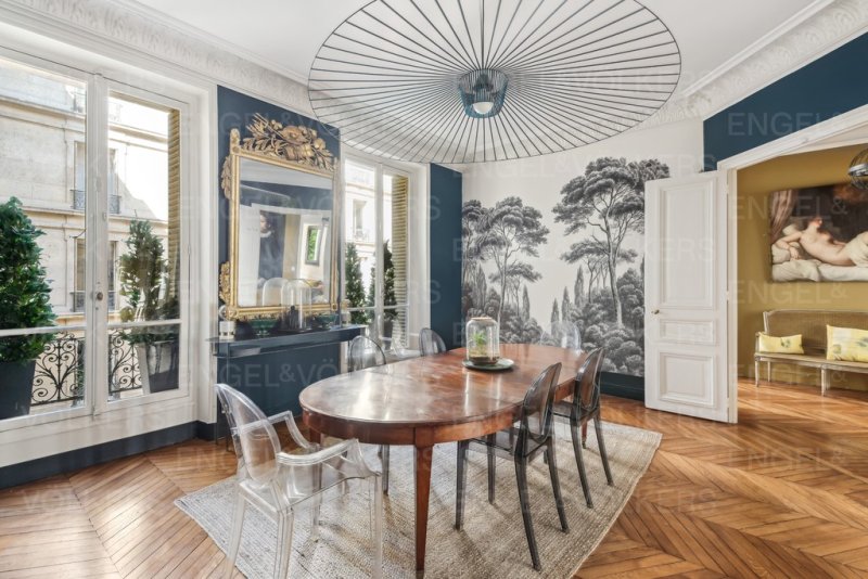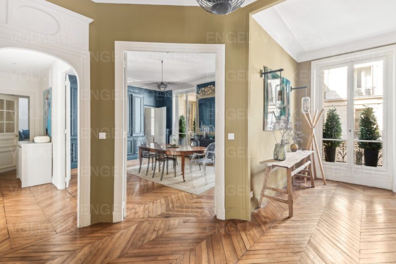 Exclusivité - Au 2ème étage avec ascenseur d'un immeuble haussmannien, Engel & Völkers vous présente cet appartement prestigieux avec balcon d'une superficie totale de 230 m² Carrez, entièrement rénové avec des matériaux de qualité.