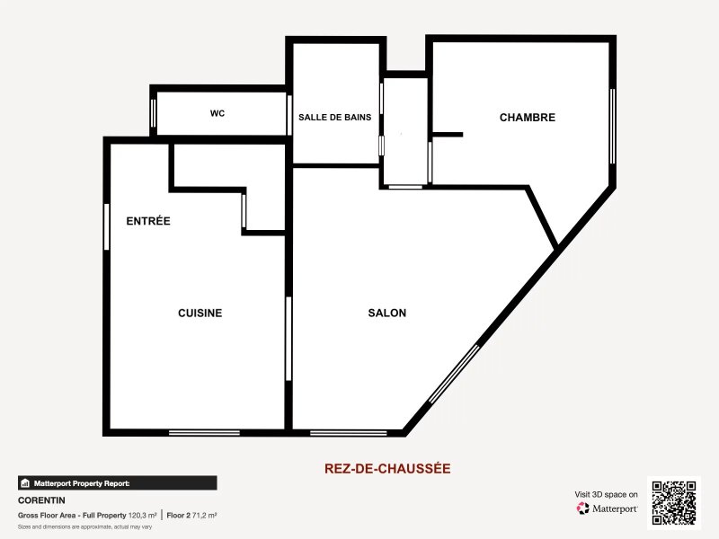 Sur ce même niveau, un couloir avec rangement dessert une première chambre de près de 12 m², une salle de bains avec baignoire menant à un toilette indépendant, le tout de plain-pied.