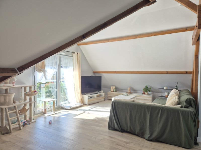 Dans un pavillon divisé en 2 appartements au sein d'une petite copropriété, un 2 pièces de 54,99 m2 en DUPLEX composé ainsi : Au premier étage une belle entrée avec placard, une grande pièce à vivre ouverte sur une cuisine aménagée, chambre, salle d'eau avec WC. Remise de 19 m2 environ, 2 places de stationnement extérieures, jardin de 90 m2 environ. Ce bien est VENDU LOUÉ.