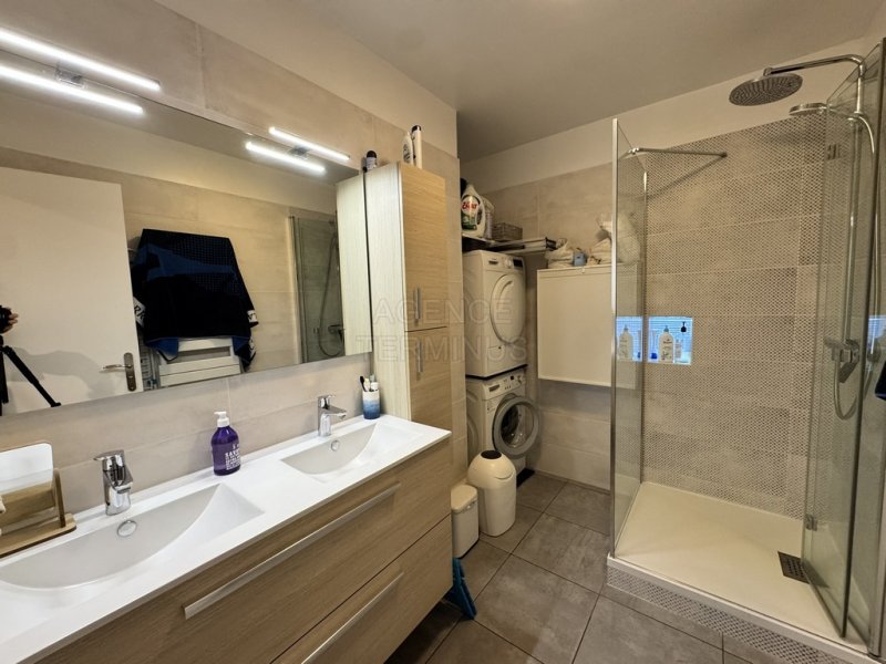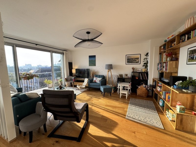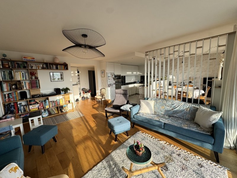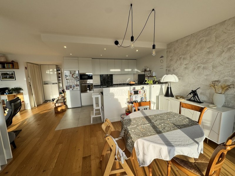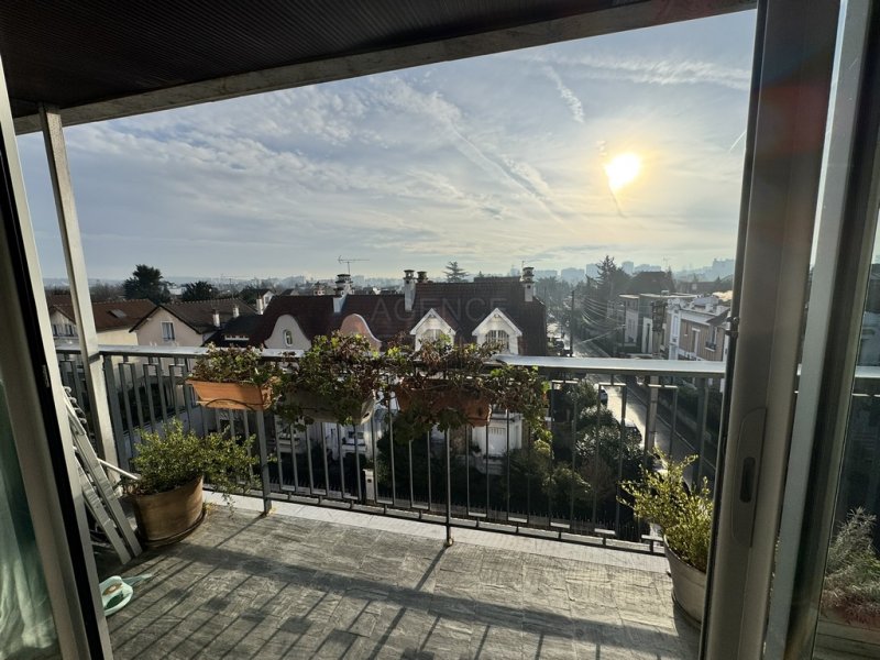 ENGHIEN LES BAINS à quelques pas de la gare et du marché, dans bel immeuble, appartement en étage élevé avec ascenseur offrant : entrée avec dressing, vaste séjour ouvert sur cuisine de 45,55m2 avec grandes baies vitrées et balcon orienté SUD EST avec vue dégagée sur PARIS, dégagement avec salle d'eau, wc séparés, deux chambres. Appartement entièrement rénové, belles prestations, cave en sous-sol et garage !