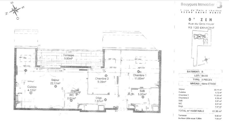 Charmant T3 comprenant entrée, séjour, cuisine américaine, deux chambres, salle d'eau, WC séparés et grand balcon sans vis-à-vis.