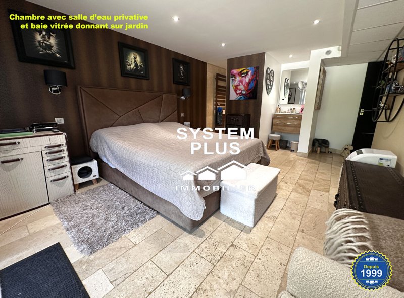 Dès l'entrée, une belle véranda de 20m², idéale en salon d'hiver ou jardin d'intérieur, suivi d'un séjour chaleureux, un espace bureau ou coin lecture; une cuisine indépendante entièrement équipée, une buanderie, une cave, un couloir avec de nombreux rangements optimisant les volumes, un espace point d'eau, une suite parentale avec salle d'eau à l'italienne, le tout sublimé par un sol travertin. Un dressing pouvant être aménagée en seconde petite chambre, bureau ou espace nuit d'appoint. WC indépendant.