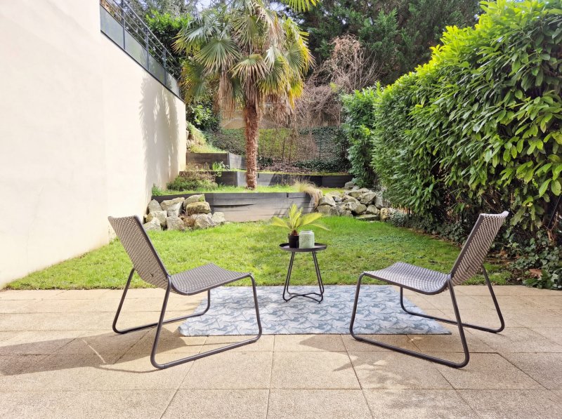 A 20 minutes du centre de Lyon, sur la commune de Fontaines sur Saône, découvrez ce bien, rare à la vente, un spacieux T2 de 64 m2 avec jardin et garage. Il se situe au rez-de-de-chaussée dans la résidence l'Ile au Roy édifiée en 2001, sur les quais de Saône. Cet appartement est un ancien T3 dont la configuration a été repensée et décoré par un architecte d'intérieur, créant de jolis espaces très cocoons L'entrée ouvre sur un beau séjour de 32 m2 avec une cuisine ouverte équipée et un accès direct à la terrasse et au jardin arboré. L'espace nuit est bien séparé par une porte coulissante et le dégagement avec grand placard aménagé mène à l'immense suite parentale de 21 m2. Celle-ci comprend un mur d'étagères avec son écran motorisé dissimulé, une belle tête de lit séparant de l'espace dressing entièrement aménagé sur toute la largeur de la pièce, et une salle de bains avec baignoire. Des toilettes séparées complètent cet espace. Profitez des belles soirées d'été à l'abri des regards, sur la terrasse et son jardin clos, sans aucun vis à vis. Un box fermé avec mezzanine est compris dans le prix. Vous serez séduits par l'environnement dans la verdure, au calme dans une résidence conviviale qui se compose de 35 logements et qui a été ravalée en 2020, par les quais de Saône avec ses activités ludiques et sportives. Taxes foncières : 1045 euros. Charges de copropriété : 114 euros / mois. Chauffage individuel gaz Arrêt de bus au pied de la résidence : Ligne 40 Bellecour - Neuville et à 600 mètres : Ligne 70 Part Dieu - Neuville. Ecoles maternelles et primaire à 1,5 kms, Collège à 500 mètres. Ecole bilingue Ombrosa à 3 kms. Les informations sur les risques auxquels ce bien est exposé sont disponibles sur le site Géorisques : www.georisques.gouv.fr Pour visiter et vous accompagner dans votre projet, contacter Geneviève KANOUTE au 06 61 42 81 68 ou par courriel : genevieve.kanoute@harmonyimmo.fr
