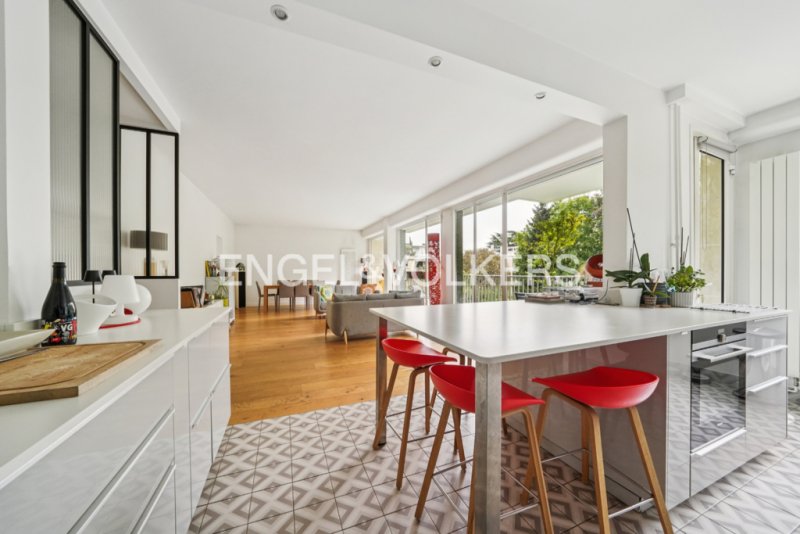 Dans un élégant immeuble en pierre de taille de seulement deux étages, Engel & Völkers vous invite à découvrir ce spacieux 6 pièces de 122,68 m² situé au premier étage, en parfait état.