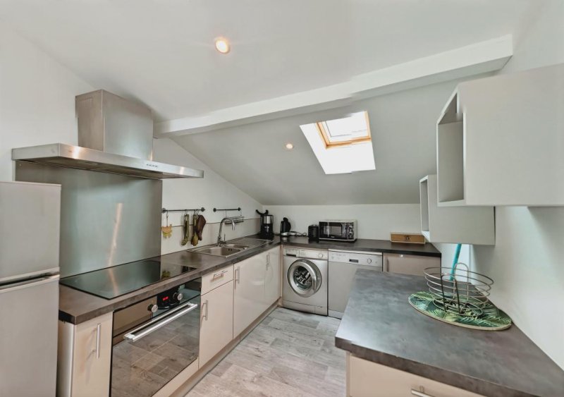 La cuisine classique, fonctionnelle, n'attend que vos inspirations culinaires. L'espace nuit propose deux chambres confortables ainsi qu'une salle de bains moderne, offrant une qualité de vie optimale au quotidien.