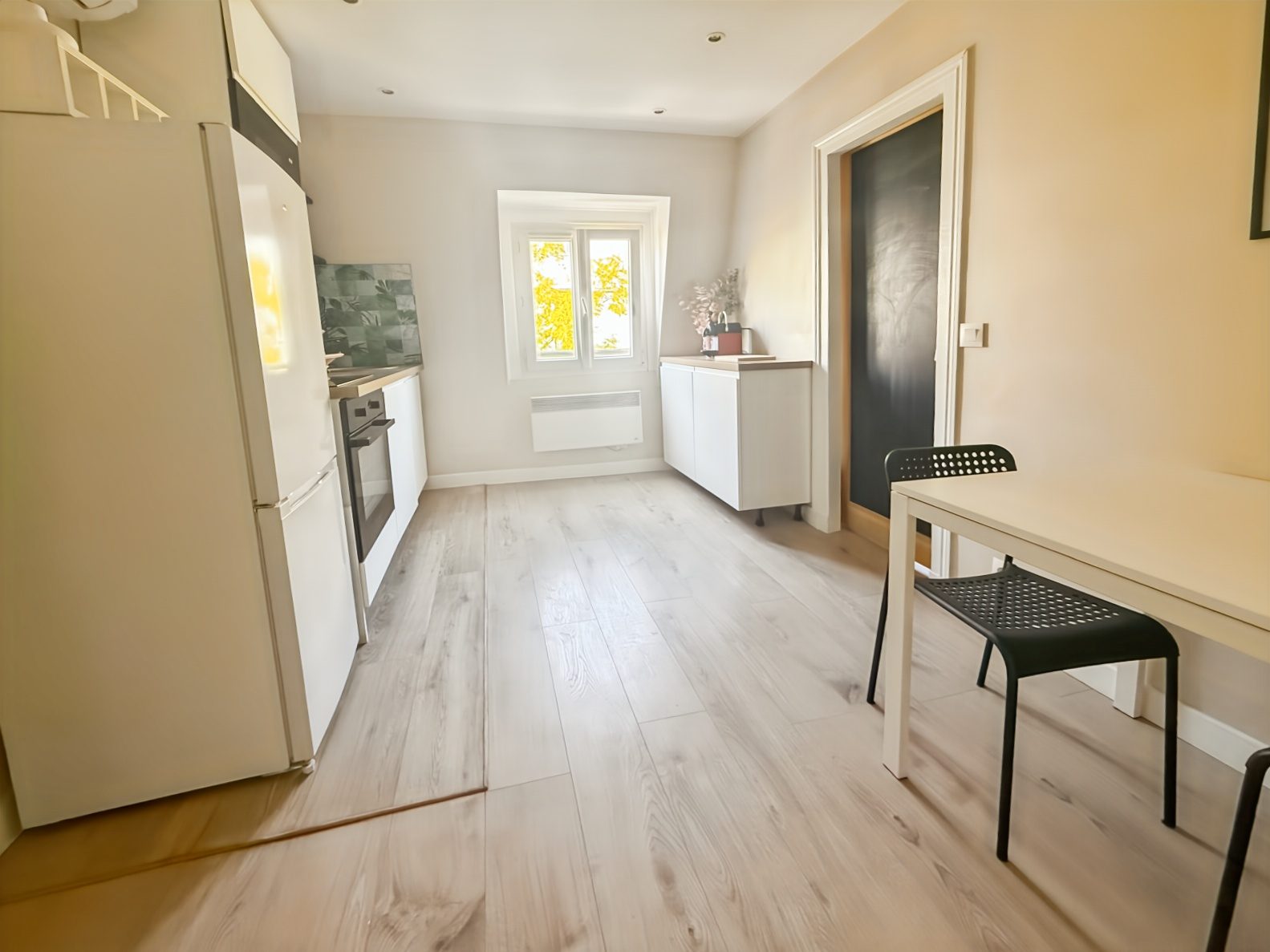 Actuellement aménagé en bureaux, ce bien offre de nombreuses possibilités d'agencement. Il comprend un vaste séjour traversant, deux chambres, une cuisine indépendante, une salle d'eau et des toilettes séparées.