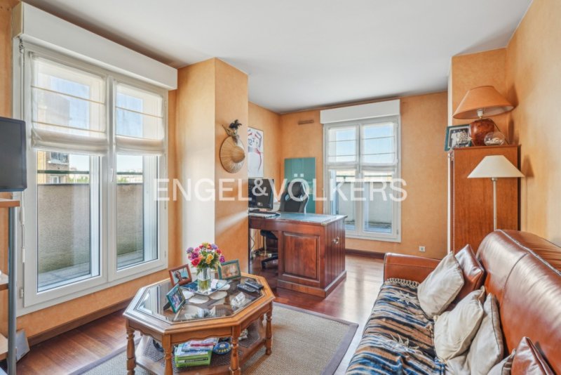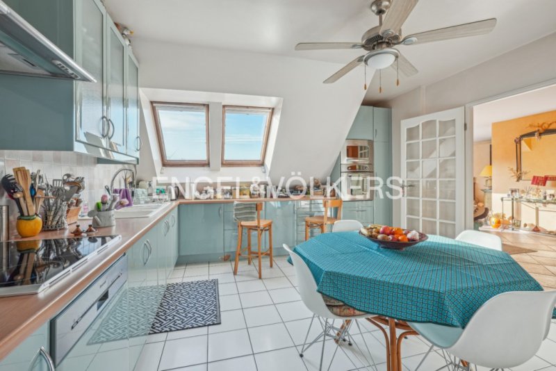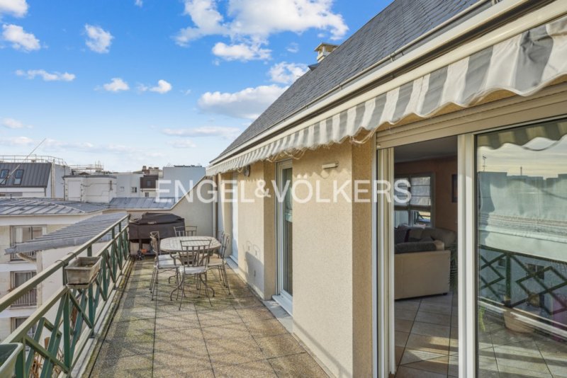 Situé au dernier étage d'un immeuble de standing, Engel & Völkers vous présente cet appartement de 170m² alliant confort et espaces uniques. Il bénéficie d'une terrasse au tour de l'appartement de 80m², idéal pour profiter de l'extérieur, ainsi que d'une exposition sud garantissant une lumière naturelle tout au long de la journée. L'appartement comprend cinq chambres spacieuses, deux salles de bain modernes et une vue partielle sur des monuments emblématiques tels que la Tour Eiffel et le Sacré-Coeur.
