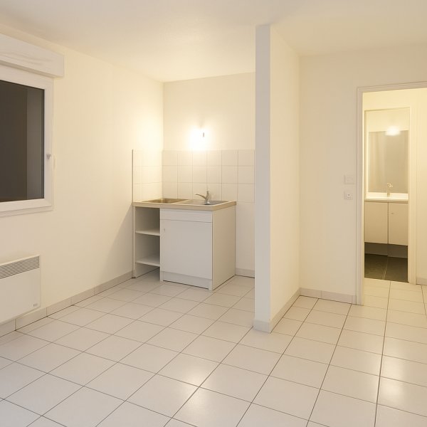Ce logement se compose d'une entrée, d'un séjour avec cuisine ouverte équipée et aménagée et un placard intégré, ainsi qu'une salle de bains fonctionnelle.