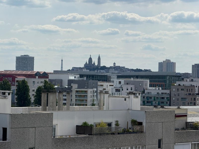 Aubervilliers, à moins de 5 minutes à pied du métro ligne 12, vue imprrenable sur le Sacré-coeur , la Tour Eiffel et le bassin de la Villette, dans une résidence calme et sécurisée avec gardien résident.