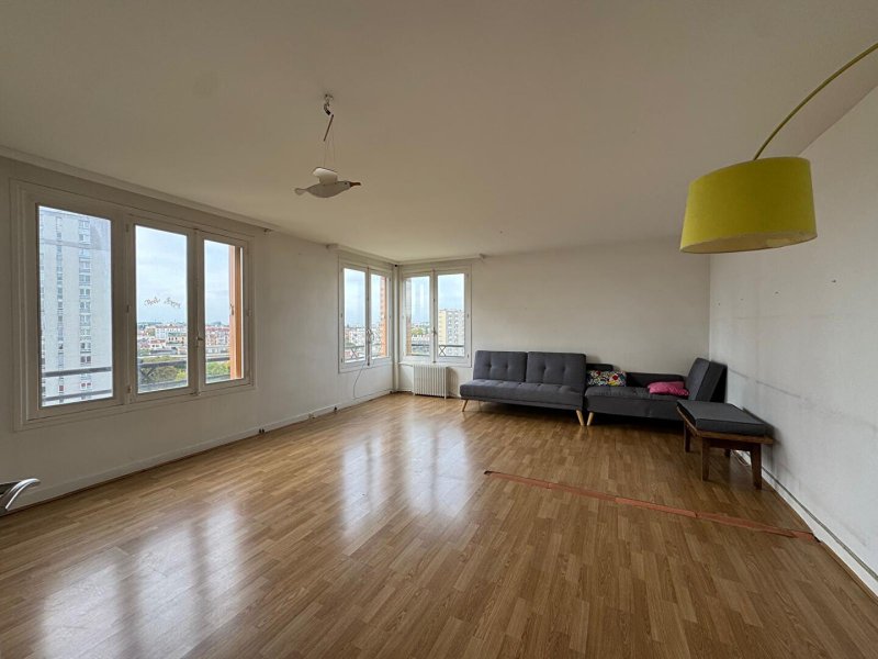 Cet appartement comprend: une entrée avec rangements, un spacieux séjour traversant d'environ 30m², bénéficiant de trois grandes fenêtres offrant une superbe vue dégagée sur le parc de la ville, ainsi que sur le Stade de France et la tour Montparnasse, une cuisine indépendante, une salle d'eau, un WC séparés, ainsi que de trois chambres, deux dégagements.