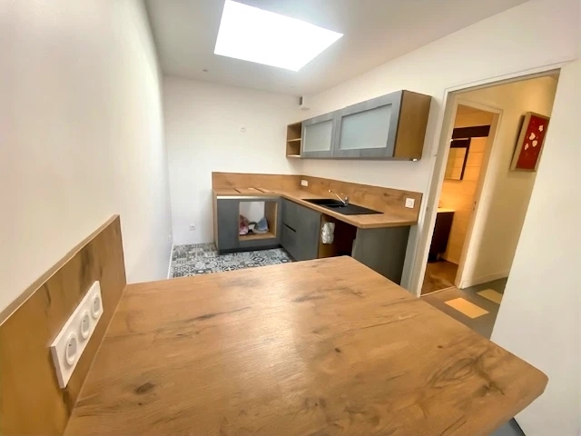 DESCRIPTIF DE CET APPARTEMENT À VENDRE : Entrée, Cuisine Ouverte, Un Séjour, 1 Chambre, Salle deau, W-c séparé, et une Véranda de 21 m².
