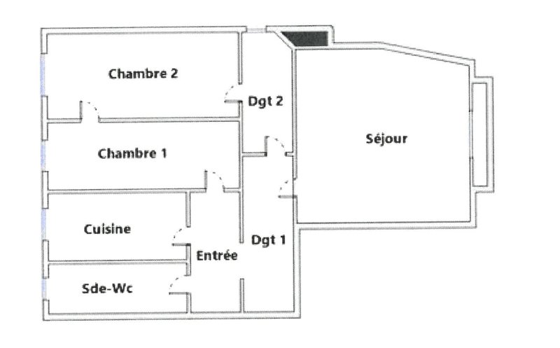Il se compose d'une entrée, d'un séjour, d'une cuisine indépendante, de deux chambres, et d'une salle d'eau avec WC.