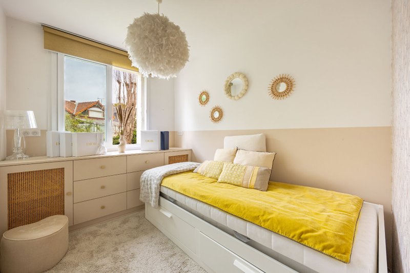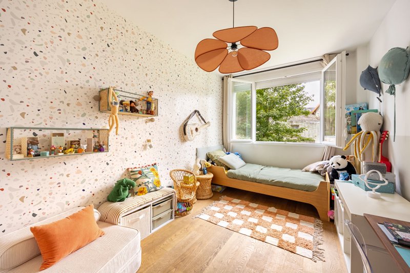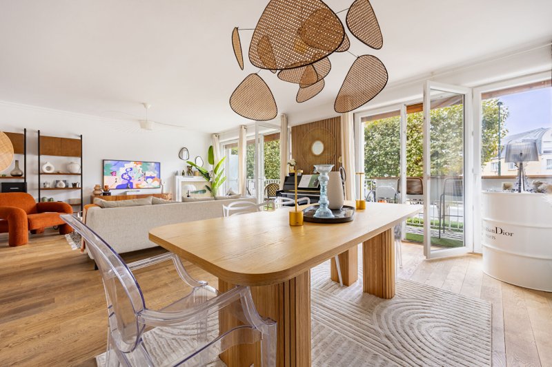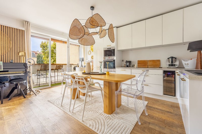 Il se compose d'une entrée avec rangements et dressing, d'une belle et grande pièce de vie de 37,76m² avec cuisine aménagée ouverte sur un beau séjour parqueté donnant sur un balcon plein soleil, 3 chambres (rangements) donnant à l'arrière au calme et sur jardin, une grande salle de bains avec douche, une buanderie avec rangements, des toilettes séparés.