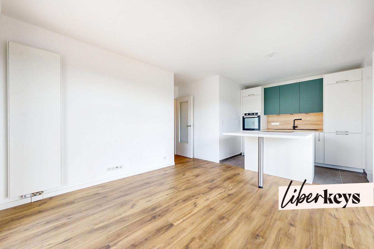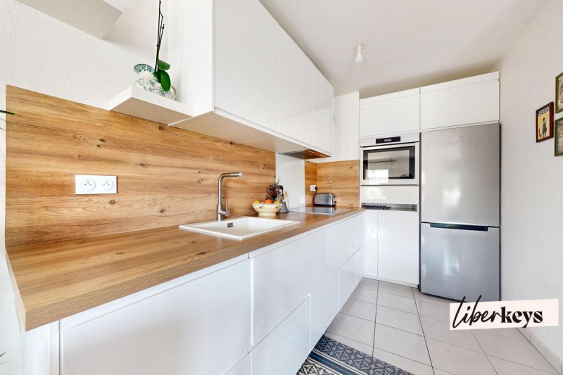 À l'étage principal, vous accédez à l'appartement par une entrée avec placard. La pièce de vie très lumineuse, constituée d'un salon-séjour de 33 m² ouvert sur une cuisine neuve aménagée et équipée, donne sur un agréable balcon couvert.