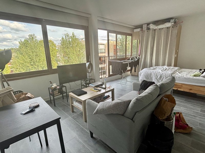 Très bien situé dans un cadre calme et verdoyant ,en étage élevé, à proximité des bus et des commerces , beau studio double en parfait état et très lumineux comprenant une entrée desservant une salle de bains avec wc , une partie jour avec cuisine équipée et une partie nuit.