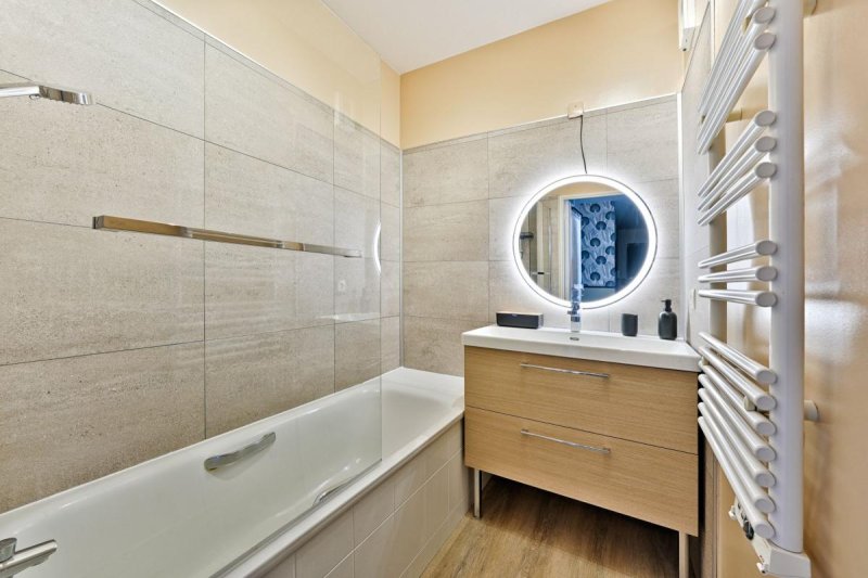 Il se compose d'une entrée, avec potentiel d'aménagement d'un espace bureau, une cuisine indépendante semi-ouverte aménagée et équipée (possibilité US), un séjour lumineux de 22m2 exposé sud/est avec espace salle à manger, parfait pour recevoir.