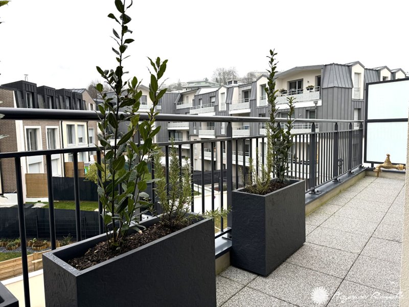 LE PORT MARLY Dans une petite Résidence NEUVE avec ascenseur, Appartement de 94m² + LOGGIA de 9m² avec vue sur jardin : Entrée, Séjour avec Cuisine américaine 30m², 3 Chambres, Dressing, 2 Salles de Douche, 2 PARKINGS sous-sol. Bus et commerces sur place. Tous les avantages du neuf. Bâtiment basse consommation A 50Kwh / B 51 à 90Kwh. AGENCE ROYALE - Elsa KROULEFF, à vos côtés pour tous vos projets immobiliers depuis 1988.